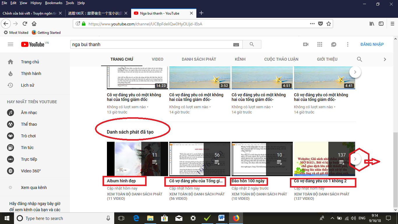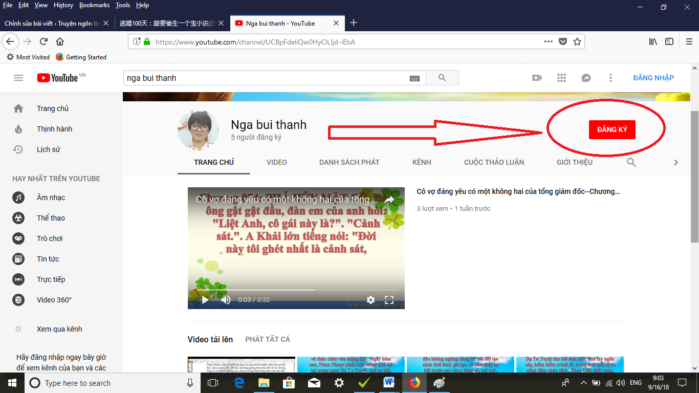 2. Click vào chữ nga bui thanh sẽ vào thẳng kênh truyện của tôi.